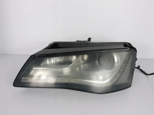 Originalteile von AUDI für den linken Xenon-Scheinwerfer AUDI A8 D4 4H, OEM 4H0941029 und 4H0941003. Diese komplette Einheit ist gebraucht und verfügt über eine elektrische Höhenverstellung. Es handelt sich um eine europäische Version, die für Personenkraftwagen geeignet ist. Alle Teile stammen aus legalen Quellen.