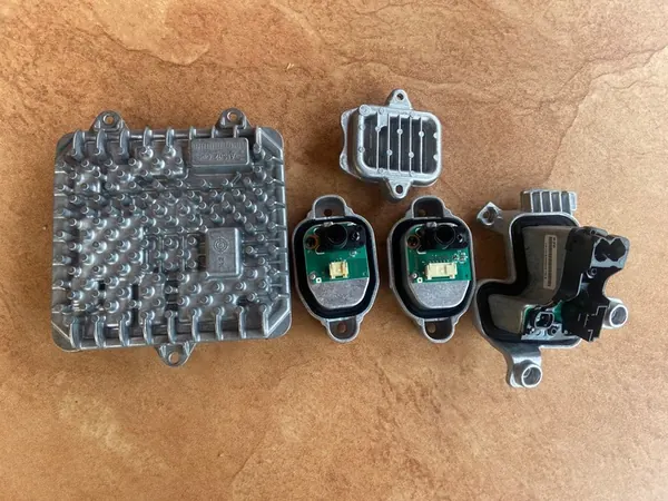 Komplettes LED-Lichtkit für BMW F30 F31, linke Seite. Das Set umfasst 2 Vorschaltgeräte, 1 Blinker und 1 Konverter. Die Teile sind funktionsfähig und wurden überprüft. Teilenummern sind: 63117419615, 63117419619 und 63119477748. Wir bieten auch komplette Lichtsets links und rechts an, die auf die VIN Ihres Fahrzeugs codiert werden können, um eine einfache Installation ohne Besuch einer anderen Werkstatt zu ermöglichen.