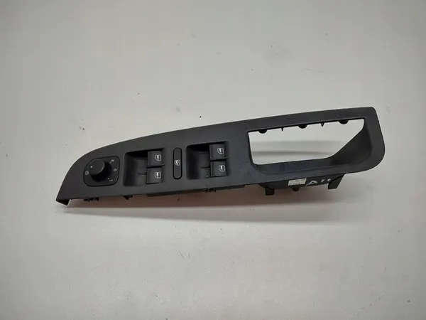 Originales Fenster-Schalterpanel zur Steuerung der Fenster und der Spiegelverstellung für VW Golf V und Jetta, Modelljahre 2004-2009. Der Schalter ist funktionsfähig, zeigt jedoch Gebrauchsspuren. OEM-Teilenummern sind 1K4868049B, 1K4959857A und 1K0959565F.