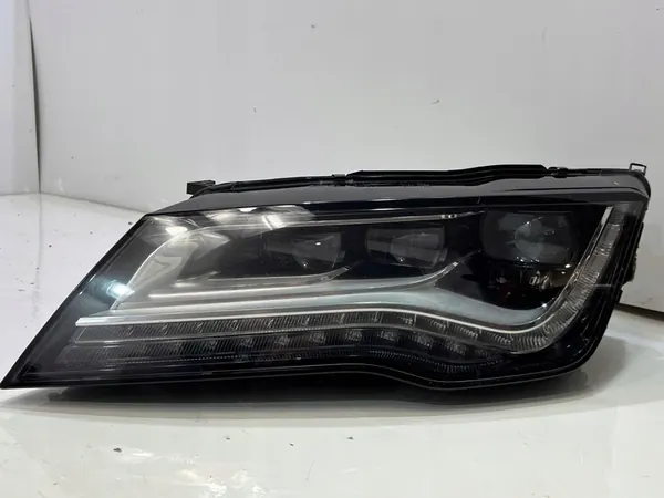 Gebrauchter linker Scheinwerfer für Audi A7 C7, Typ Full LED. Dieses Teil stammt von einem Fahrzeug mit einer Laufleistung von 131.000 km, Baujahr 2013, und ist in der Farbe LY9C lackiert. Das Fahrzeug ist mit einem 3.0 TFSI Motor (Code: CGX, CGXB) und einem Automatikgetriebe (Code: NPR) ausgestattet. Der Scheinwerfer befindet sich in einer Ersatzverpackung und wird von Volkswagen hergestellt. Die OEM-Teilenummer lautet 4G8941033B.