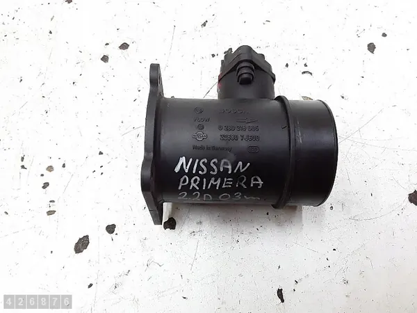 Luftmassenmesser für Nissan Primera 2003, 2200 dCi. OEM-Teilenummer: 0280218005 226807j600. Gebrauchte Automobilteile in gutem Zustand. Professionelle Installation empfohlen.