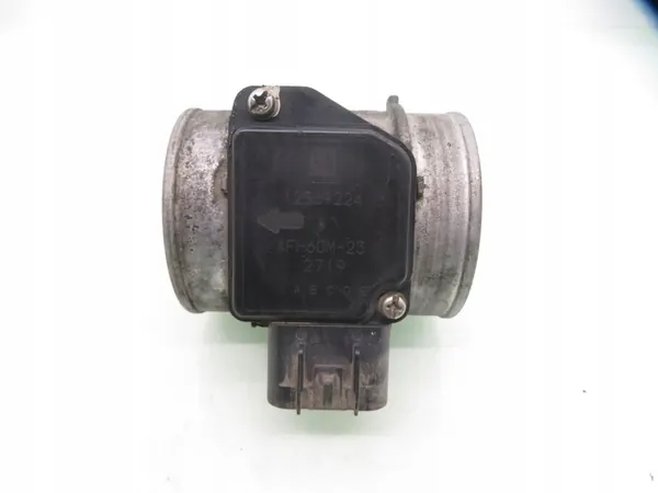 Gebrauchter Luftmassenmesser für Opel Vectra C GTS (Z02) 2003, 2.2 16V - Z 22S. Das Fahrzeug hat 5 Türen und ein manuelles 5-Gang-Getriebe. Die Seriennummern umfassen 12576059, 12569224 und AFH60M23. Das Teil hat einen 4-poligen Stecker. Alle Teile stammen aus unserer Demontagewerkstatt.