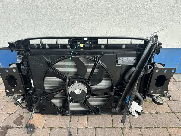 Frontkomplettkühler für VW GOLF VII, Modelljahre 2013-2018. Kompatibel mit den Motoren 1.2 TSI, 1.6 TDI und 2.0 TDI. Diese Version ist für einen kleinen Intercooler. Das Teil entspricht dem sichtbaren Bereich auf den Bildern. Gebraucht.